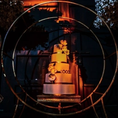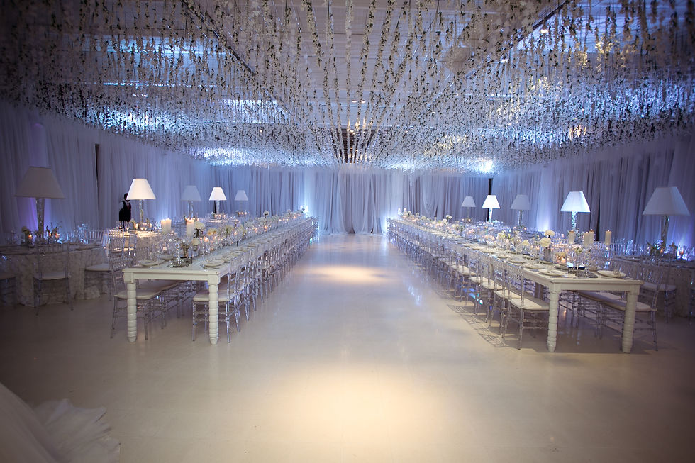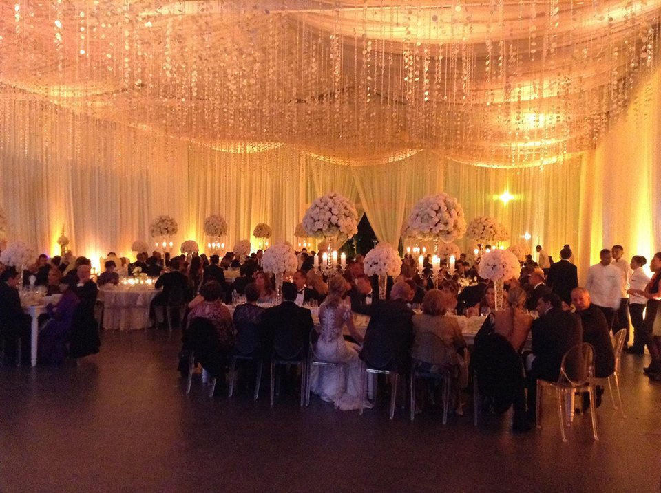 Boda blanca con iluminacion ámbar.